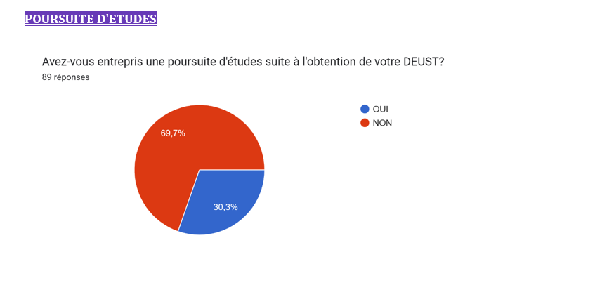 Suite à notre enquête d’intégration effectuée auprès de l’ensemble de nos diplômés DEUST en Juin 2025, nous vous partageons quelques chiffres :